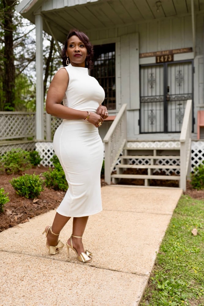Mock Neck, Midi Dress w/back split